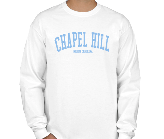 Chapel Hill North Carolina Embroidered White Chill Long Sleeve T-Shirt