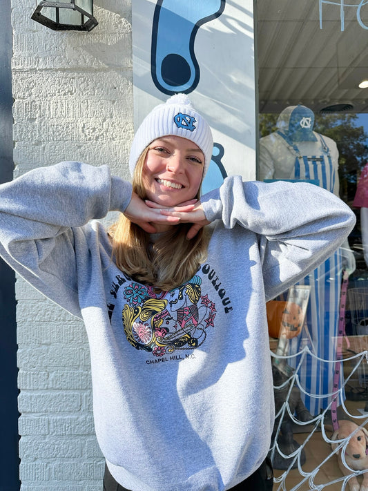 UNC White Winter Knit Hat with Pom for Women