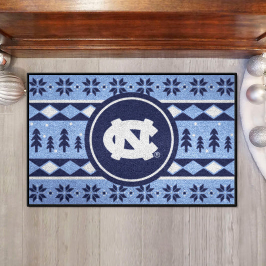 North Carolina Tar Heels Holiday Sweater Starter Mat with NC Logo & Holiday Sweater Art by Fanmats