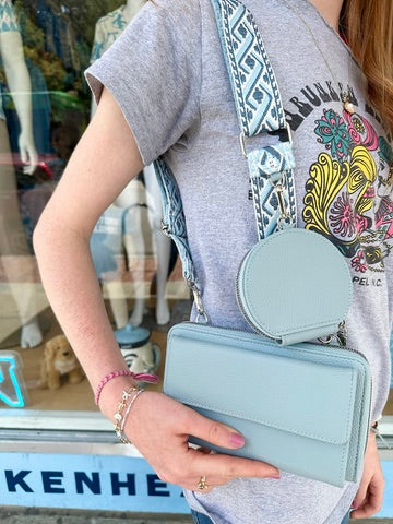 Carolina Blue Woven Weaved Crossbody Shoulder Bag