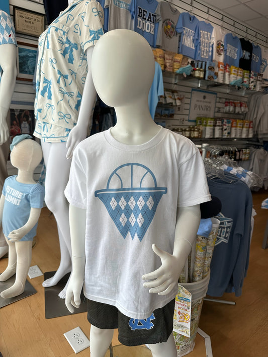 White and Carolina Blue Argyle Net Kid's T-Shirt