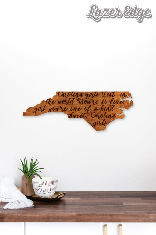 Wooden North Carolina State Map Wall Hanging Decor Carolina Girls in Cherry