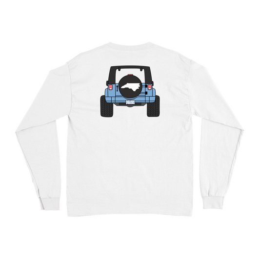 Carolina Blue Jeep on White Comfort Colors Adult Long Sleeve Shirt