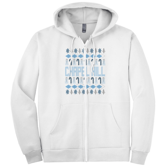 Chapel Hill Christmas Pattern White Full Zip Adult Hoodie