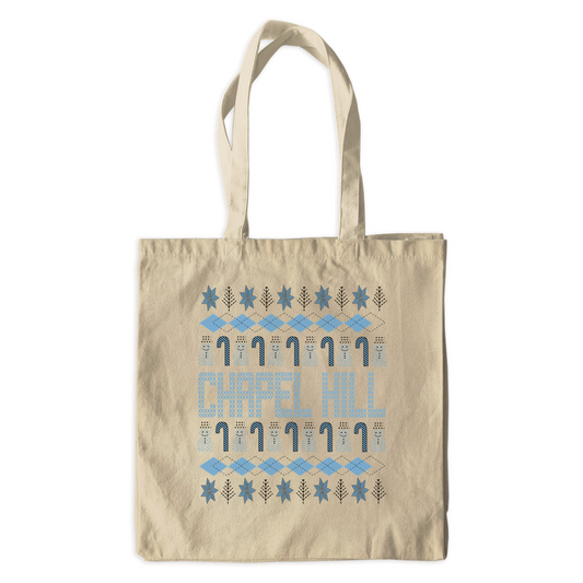 Chapel Hill Christmas Pattern in Carolina Blue Canvas Tote Bag