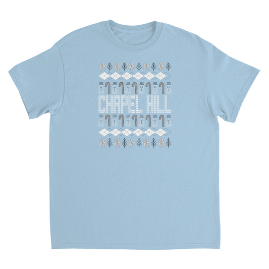 Chapel Hill Christmas Pattern Carolina Blue Adult T-Shirt