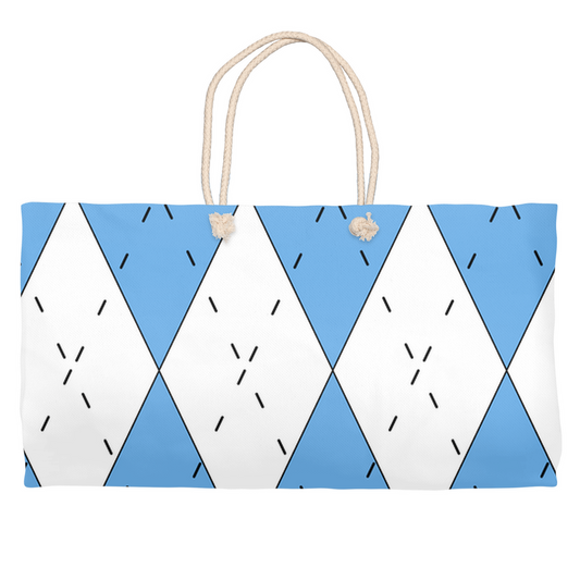 Carolina Blue and White Argyle Weekender Tote