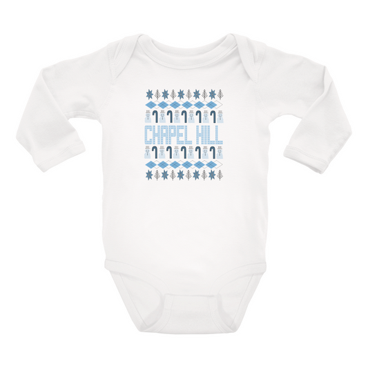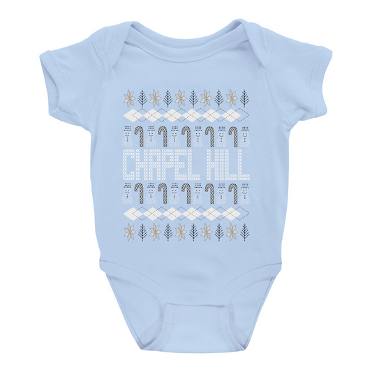 Chapel Hill Christmas Pattern Light Blue Baby Onesie