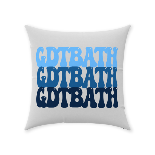 GDTBATH Throw Pillow White with Carolina Blue Groovy Letters