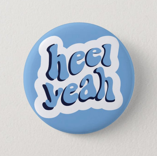 Heel Yeah Button Pin in Carolina Blue by Shrunken Head Brand