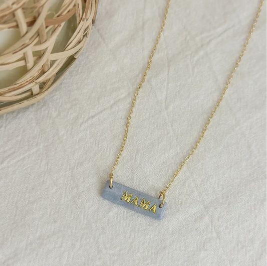 Carolina Blue MAMA Bar Necklace