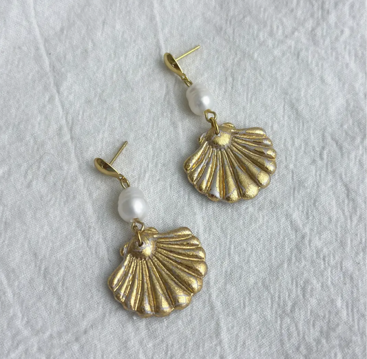 Gold Seashell Drop Earrings