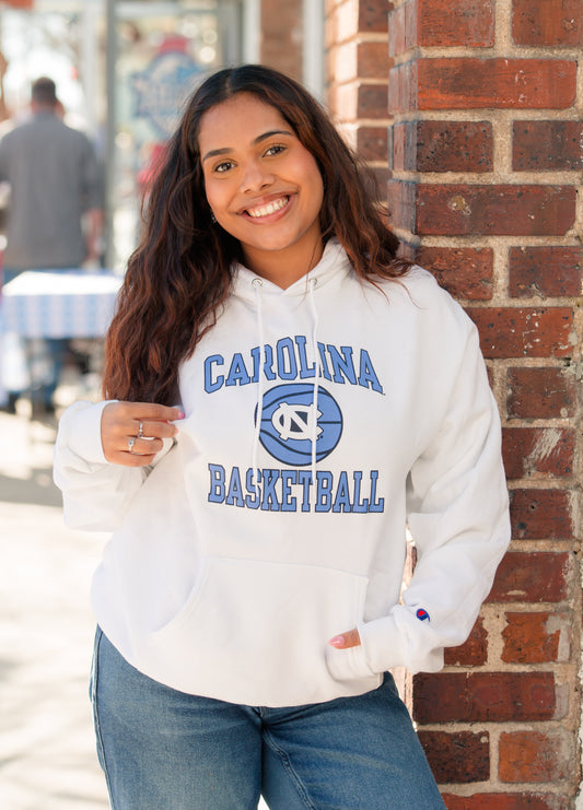 Vintage White Champion Carolina Basketball Hoodie Sweatshirt