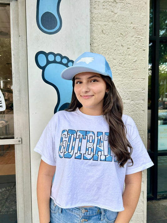 Beat Dook Crop Top in White with Carolina Blue Letters
