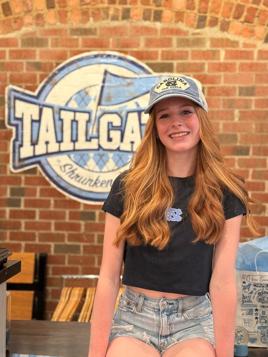 UNC Logo Women's Baby Tee Style Navy Crop Top