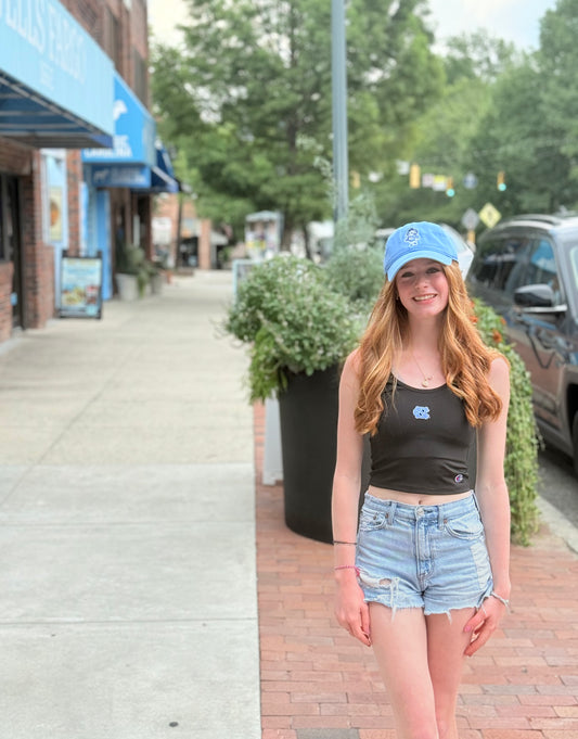 UNC Logo Women's Baby Tee Style Black Crop Top