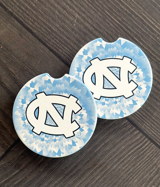 North Carolina Tar Heels Car Coasters 2 Pack in Tie Dye
