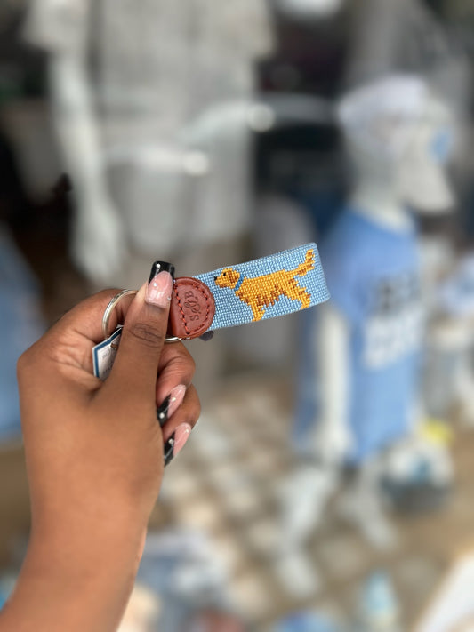 Carolina Blue Golden Retriever Fob Style Needlepoint Keychain