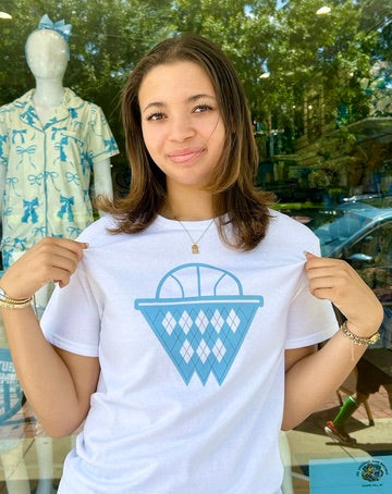 White and Carolina Blue Argyle Net Adult T-Shirt