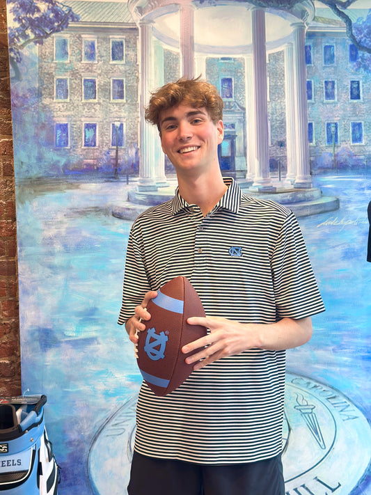 North Carolina Tar Heels Navy Blue Striped Men's Polo Shirt Eco Recycled by Cutter and Buck