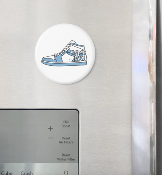 23 Sneaker in Carolina Blue and White Button Keychain 2.25"