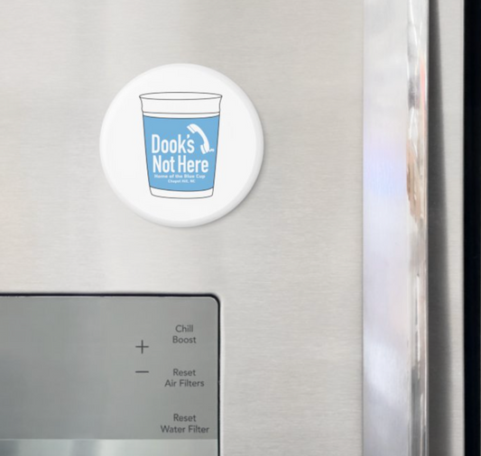 Dook's Not Here Blue Cup Button Magnet 2.25"