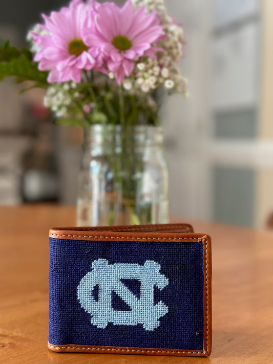 North Carolina Tar Heels Navy Needlepoint Wallet by Smathers and Branson