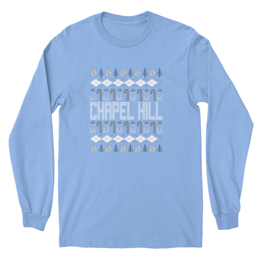 Chapel Hill Christmas Pattern Carolina Blue Kid's Long Sleeve T-Shirt