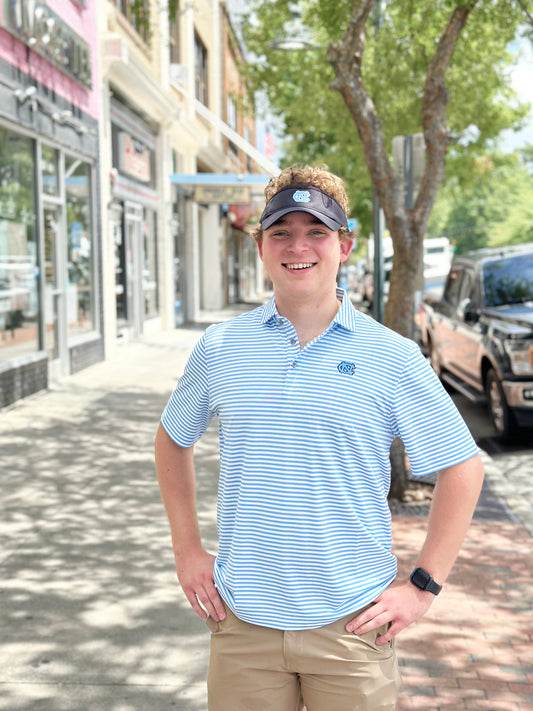 UNC Old Well Men's Shirt by Southern Tide Desmond Stripe Perf Polo