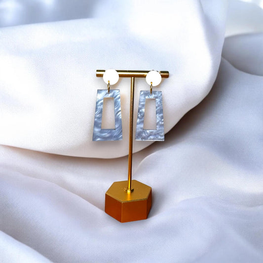 Light Blue & White Acrylic Rectangle Game Day Earrings