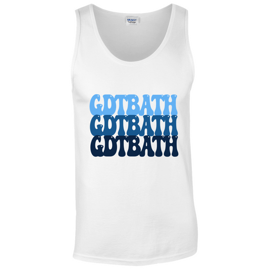 GDTBATH Tank Top in White with Carolina Blue Groovy Letters