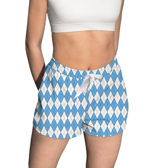 Carolina Blue and White Argyle Women's Pajama Shorts