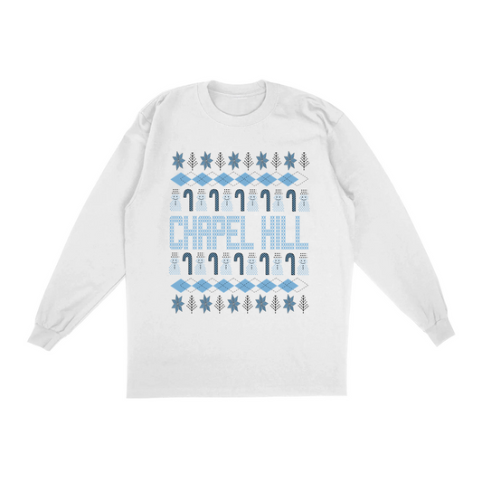 Chapel Hill Christmas Style White Oversized Adult Long Sleeve T-Shirt