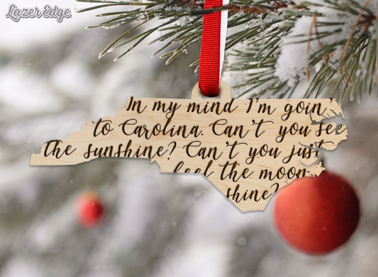 North Carolina State Map Wooden Ornament In My Mind Red Rib in Maple