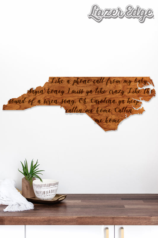 North Carolina State Map Wooden Wall Hanging Decor Keep Callin Me in Cherry
