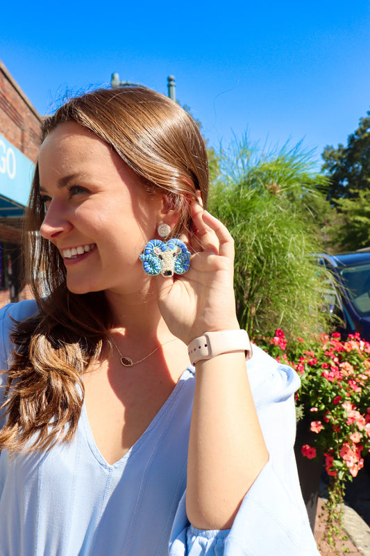 Carolina Blue Beaded Ram Earrings by Allie Beads