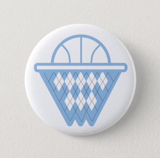 Argyle UNC Basketball Button Pin by Shrunken Head Brand