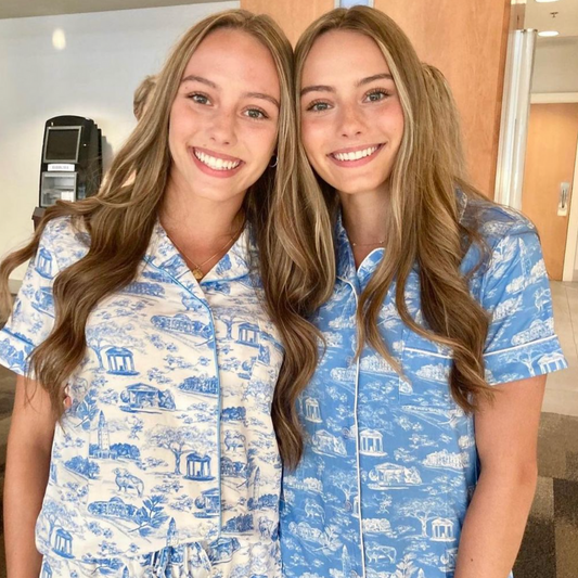 Tar Heel Toile Pajamas in Carolina Blue Short Sleeves and Shorts by Nothing Finer