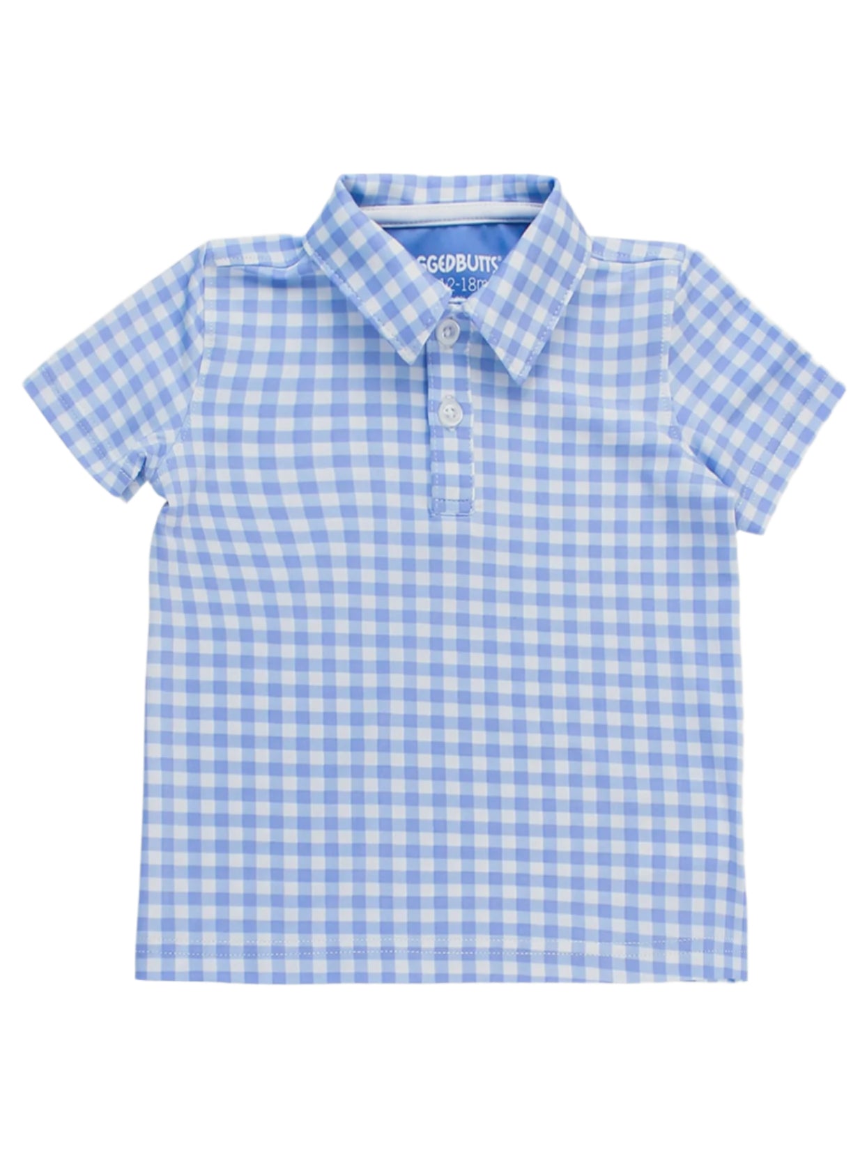Baby Classic Periwinkle Blue Gingham Knit Short Sleeve Performance Polo