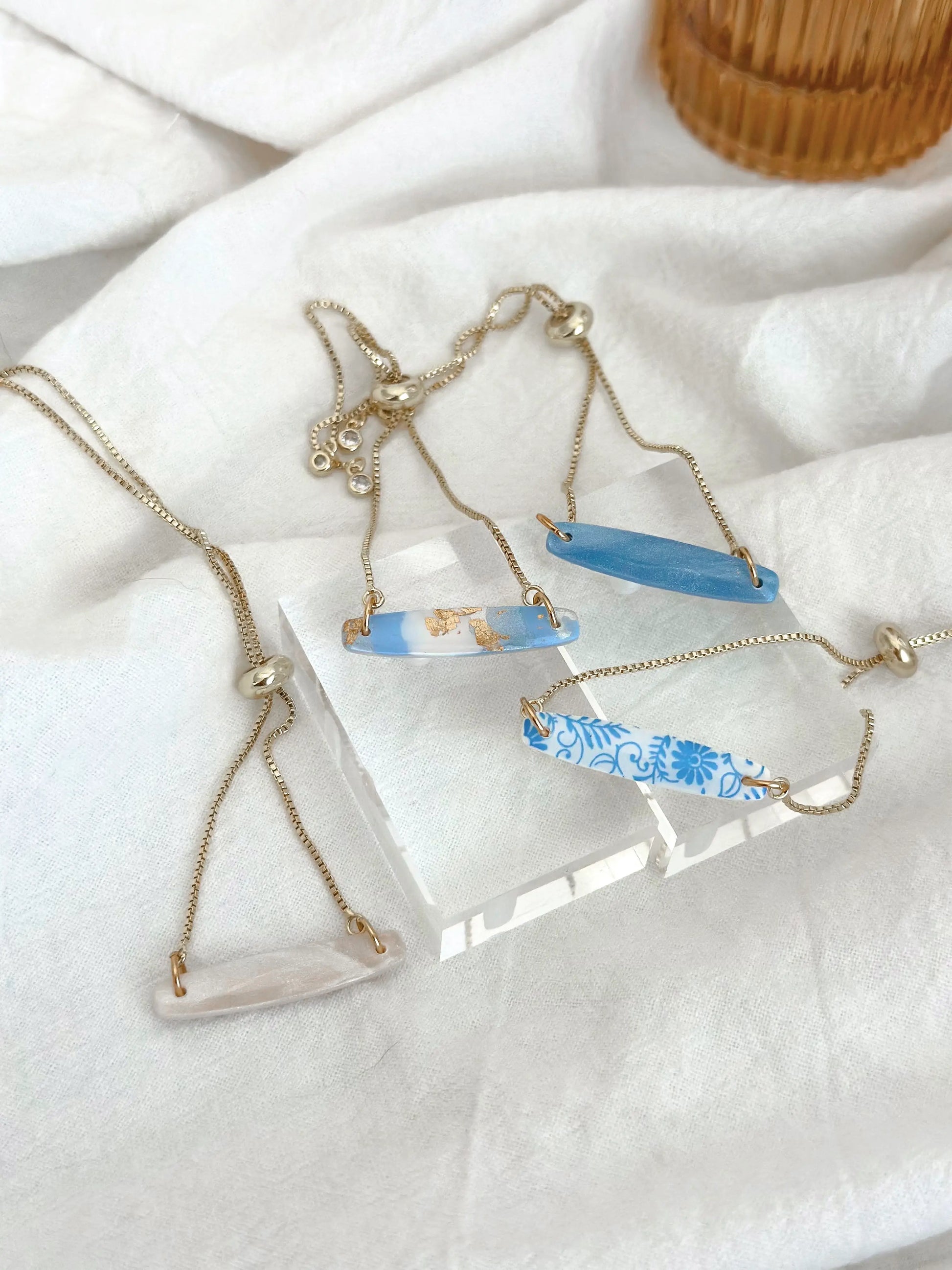 AnnaBanana jewelry is created with polymer clay and resin. Each piece is handmade in small batches in Raleigh, North Carolina.