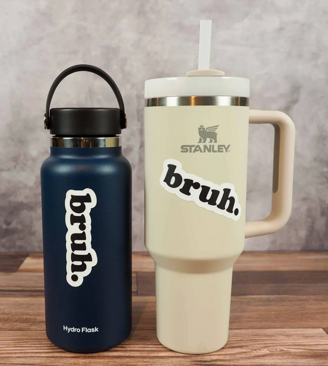 Bruh sticker, 3.75" tumbler & laptop decal size. Durable die-cut vinyl decal with a matte UV-resistant coating. Waterproof & weatherproof for indoor & outdoor use. Made in USA.