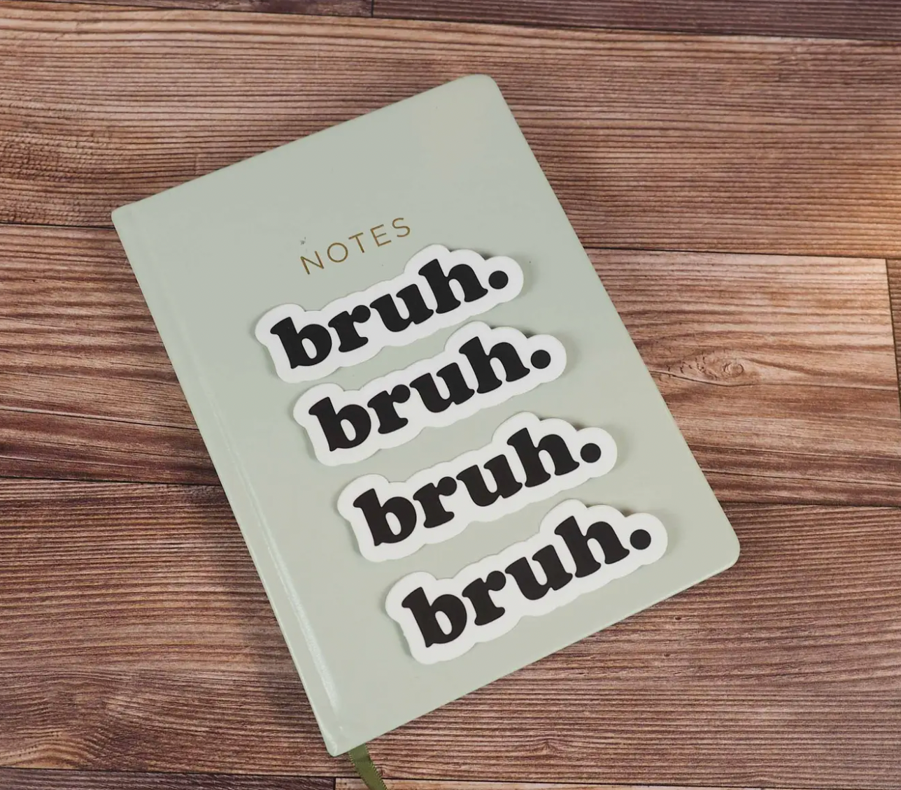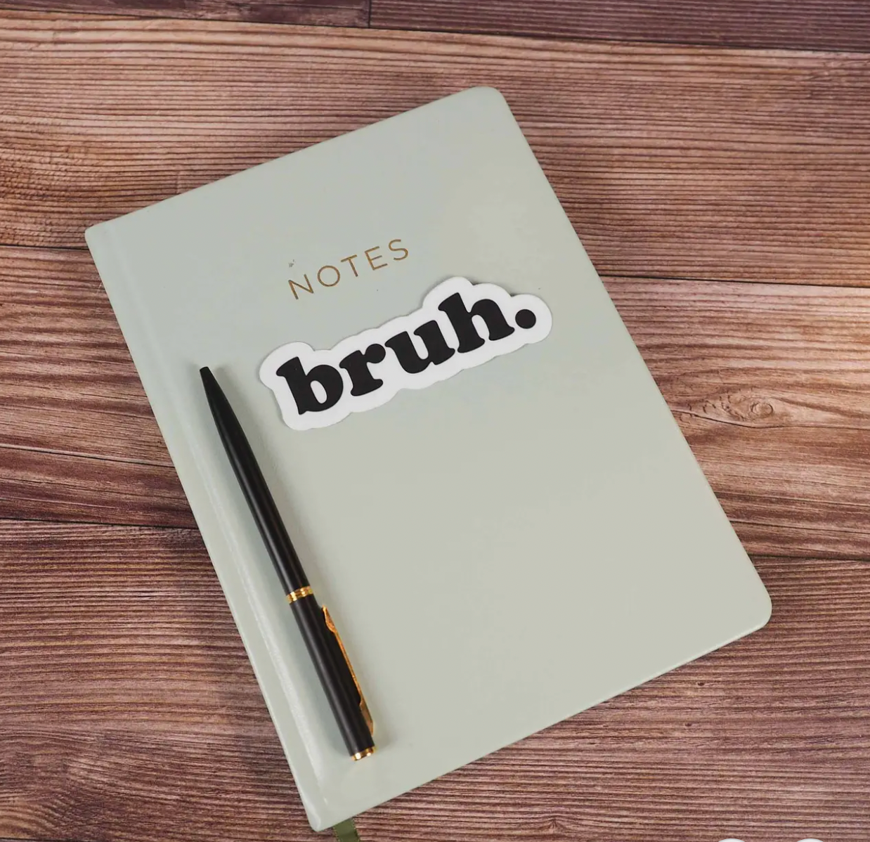 Perfect impulse buy item for boutiques, novelty gift shops, coffee shops, & bookstores. Some days, the only reaction you can muster to life's craziness is a simple "bruh." Now you can express your mild disappointment to the world with a simple black & white bruh sticker. It's a great gift for friends or Gen-Z teens who have made the word a staple of modern vernacular, online and off.