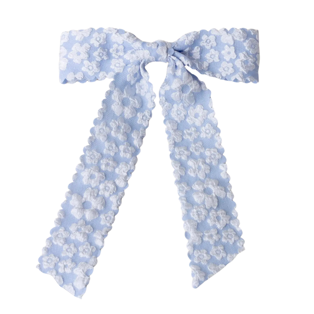 Add a sweet touch of charm to your look with our Flower Scallop Hair Bow! This bow features a beautiful scalloped edge design adorned with subtle flower details for a feminine, elegant finish. The gold barrette clip closure ensures a secure and comfortable all-day hold. Stylish and versatile for any occasion Soft, high-quality fabric with a chic, polished look Secure, comfortable all-day hold Gold barrette clip closure dims: 7βL x 5βW x 1βH