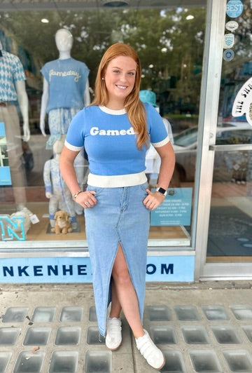 Carolina Blue Gameday Short Sleeve Sweater Top