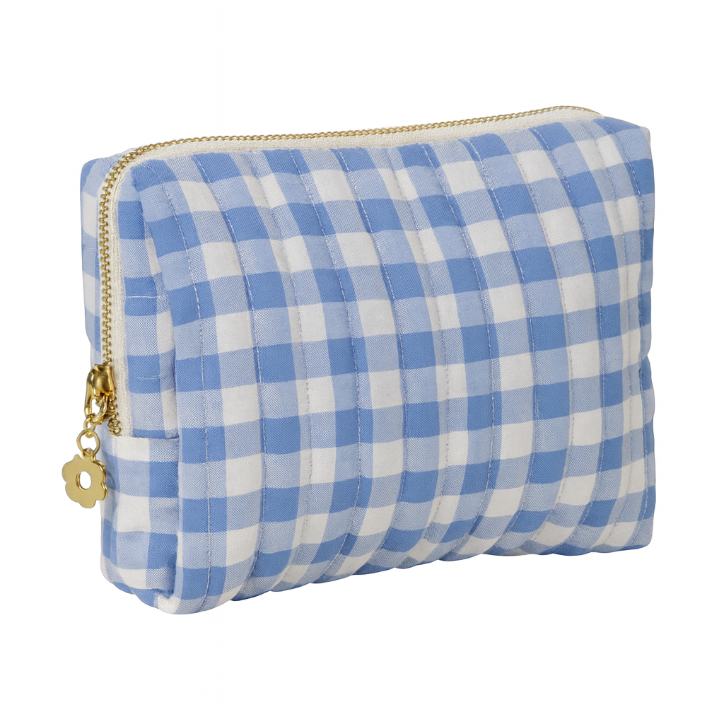 Our Color Parade Carolina Blue Gingham Cosmetic Case boasts a vibrant gingham pattern that adds a pop of Tar Heel color to your travels. Its functional design ensures your cosmetics stay safe and organized on the go, making it the ultimate travel companion. Gold tone zipper with daisy shape zipper pull Dimensions: approximately 6β(L) x 7β(W) x 2.5"(H) Machine washable cold water, air dry, recommended for spot cleaning Made in China