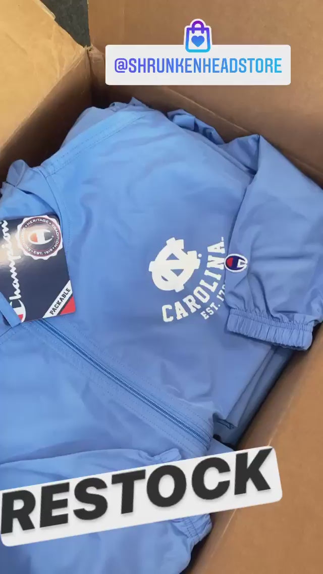 Whereever you need to be prepared for wind and rain, take this awesome UNC Packable Jacket by Champion available in stunning Carolina Blue or sleek Graphite Grey. Officially Licensed Carolina Tar Heels Logos and features like a scuba collar hood and packing front pocket make this a must have Carolina Rain Jacket.
