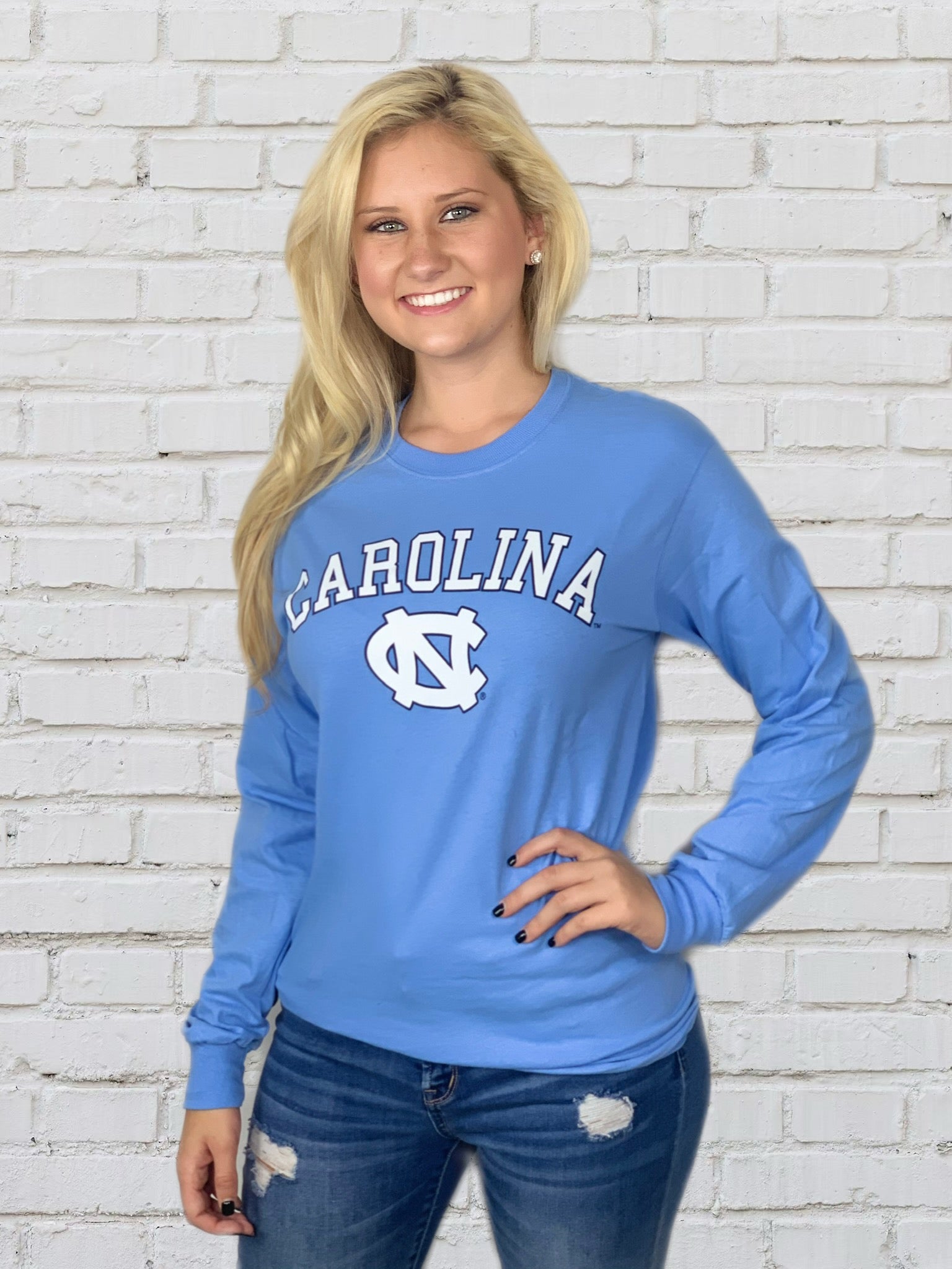 Officially Licensed Screen Printed UNC logos Best Value Carolina Long Sleeve Shirt in Chapel Hill!