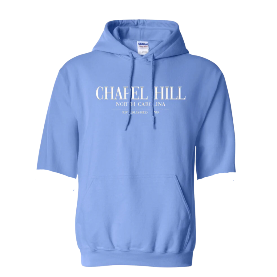 Chapel Hill North Carolina Embroidered Chill Hoodie Sweatshirt in Carolina Blue with CUT Sleeves