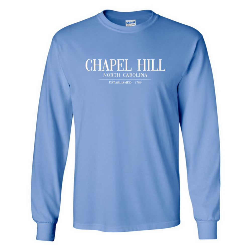 Chapel Hill North Carolina Blue Chill Embroidered Long Sleeve T-Shirt