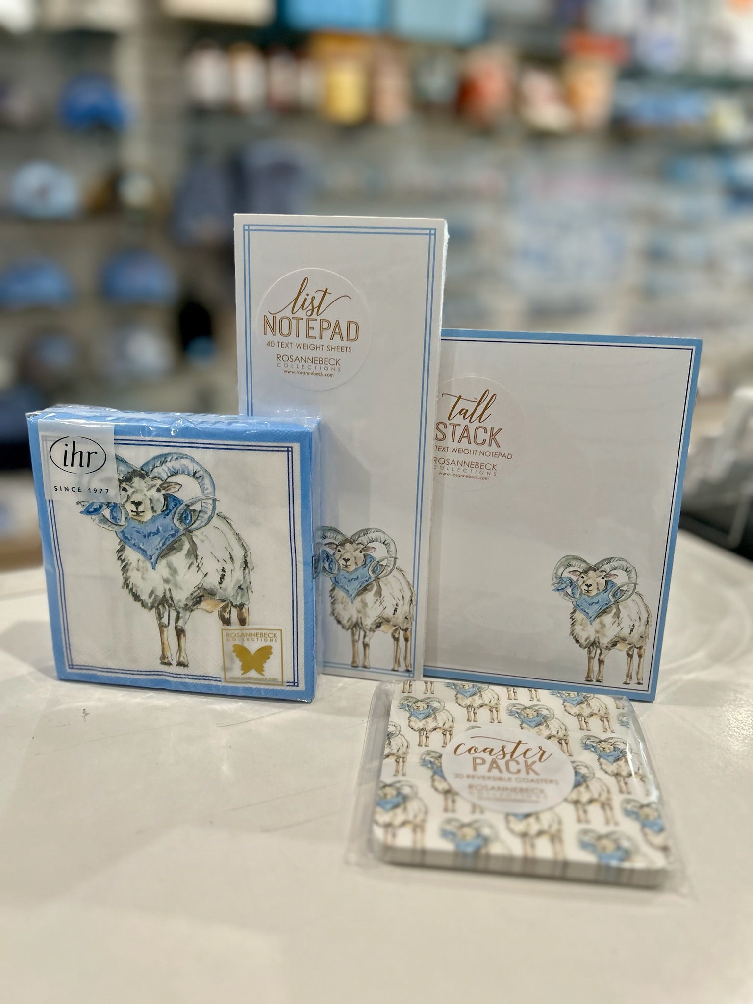 Keep your notes organized with this handpainted ram with blue bandana stack pad. Featuring a charming ram in a blue bandana, this handy pad offers plenty of space for reminders, lists, and doodles. Its artistic design adds a touch of personality to any desk, making it a perfect gift for tar heels and stationery fans alike.